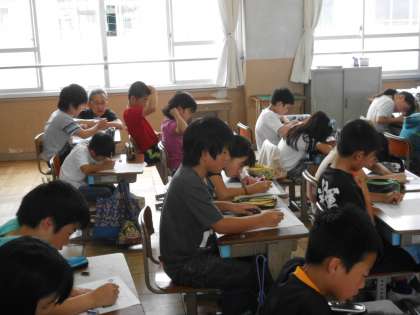 算数ではわり算の学習の復習に取り組みました。わり算はしっかりマスターしておきたいことの一つです。これまでの学習はしっかり理解できているか,自分自身で振り返ることができるようにもなってほしいです。みんな集中して問題に取り組んでいます。