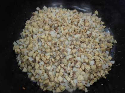 もう一つの新献立は、『たけのこのおかか煮』。春が旬のたけのこをおかか煮にしました。だし昆布からとっただしで、たけのことこんにゃくを煮て、最後に花かつおを加えて仕上げました。