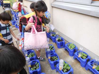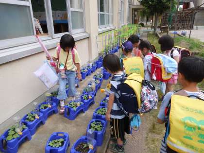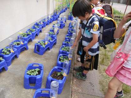 たくさん芽を出し,そして大きくなりました。その成長をとても喜ぶ1年生たち。うれしそうに報告してくれます。いつも気にして観察しています。日々のお世話も頑張っています。