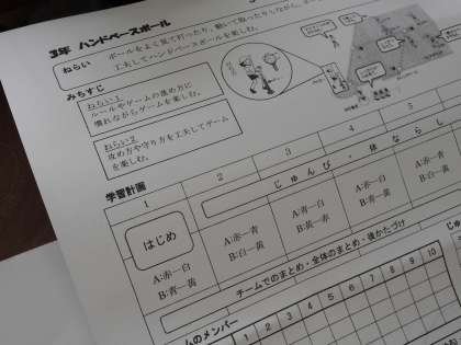 体育でハンドベースボールの学習に入ります。ベースボールはルールが複雑で,初めての人にとっては難しい単元になります。学習カードを活用して,みんなでルールを確認しました。これからの学習の見通しがもてたようです。