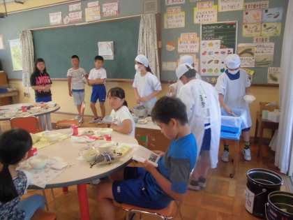 今週よりランチルームでの給食が始まりました。クラスごとに1年間に2週、ランチルームで給食を食べて、食についてじっくり考える時間にもしていきます。