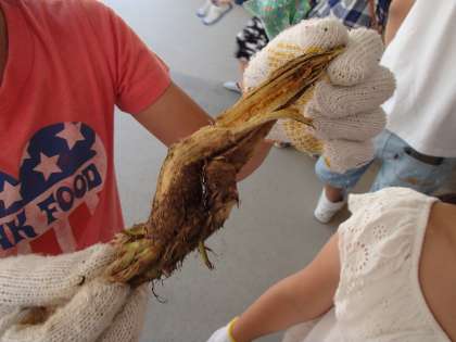 「先生これ!ごぼうのにおいがする!」「何かなあ。」