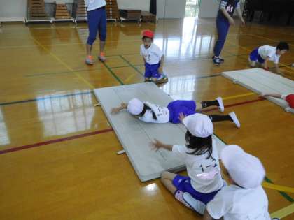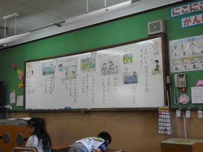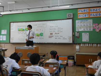 1年生は,道徳で善悪の判断が必要な場面で,どのように行動すればよいのか,考え,意見を出し合いました。算数では,いよいよ足し算の学習が始まりました。数図ブロックを使って「合わせる」「増える」場面を操作で理解し,式につなげます。体育では,マット遊びで,様々な転がる技を楽しみました。運動のルールも学びながら学習しています。
