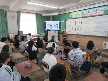 人権集会では、校長先生より「心の豊かさ」についてのお話がありました。おにさんのCMを通して、人と人が楽しく過ごすために大切なことは、「笑顔」「分け合う」「されてうれしいことをする」だと分かりました。また、各クラスの人権標語の発表では、これまでの取組をふり返り、3月までにどんなことを頑張っていきたいかを考えることができました。ご参観いただき、ありがとうございました。