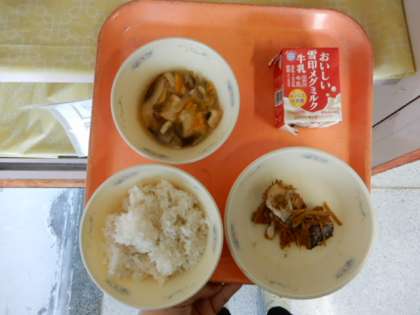 麦ごはん、牛乳、さばのしょうが煮、厚あげの野菜あんかけ