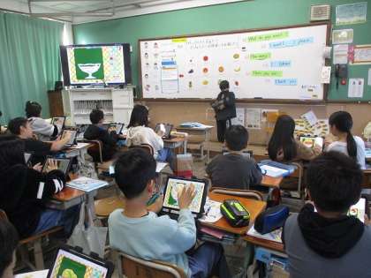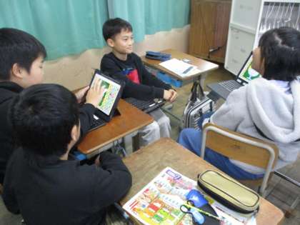 外国語「What do you want?」の学習では、児童同士でパフェを作る活動をしました。お店役とお客役に分かれて、欲しい果物を尋ねたり答えたりすることを頑張っていました。