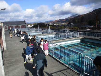 蹴上浄水場は、日本最初の急速ろ過浄水場として明治45年(1912年)4月から給水が開始されました。その後も何度も工事や修理を行い、現在の施設ができました。
