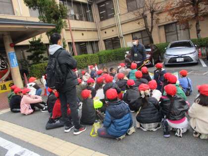 12月8日(月)には「右京警察署」と「右京消防署」へ社会見学に行きました。初めに、右京警察署へ行きました。