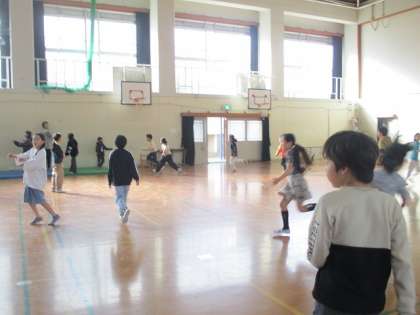 まずは、けいどろです。事前に追いかける人数を決めるなど、みんなが楽しめる工夫を考えていました。時間いっぱい、全力で楽しむことができました。