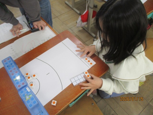 算数科の「大きい かず」では、ゲームを通して、大きな数の比べ方を学習しました。大きな数を比べるには、十の位を見ればよいこと、十の位が同じときは、一の位で比べればよいことに気づきました。友達とゲームを楽しみ、数の大きさを比べることができました。
