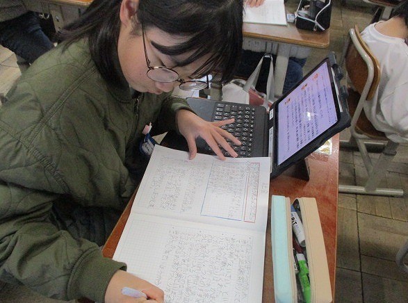 社会科では、高級なお茶を生産している宇治市の様子について学習しています。とても興味をもって、宇治市の茶畑や宇治茶の作り方を調べていました。