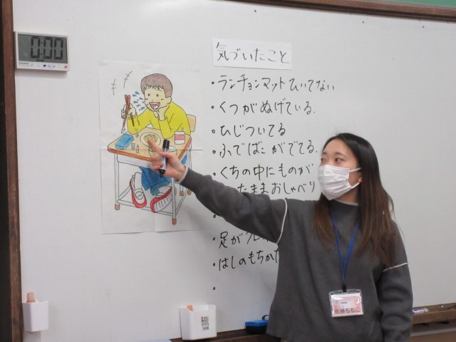 「口の中にものが入ったまま食べない。」や「ひじをついて食べない。」など、気もちの良い食事をするために大切なマナーについて考えました。