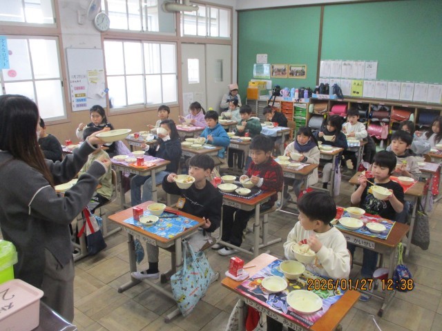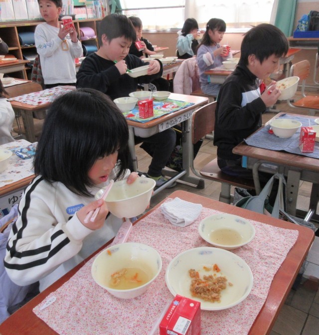 給食の時間、「学んだことを生かせているかな?」と、一人ひとりマナーを意識しながら食べていました。