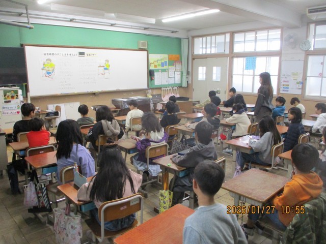 食の学習で「給食時間の過ごし方」について学びました。