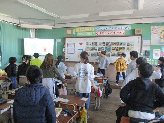 外国語「This is my favorite place.」の学習をしました。自分が気に入っている校内の場所を案内できるよう、教室名や方向の言い方に慣れ親しみました。