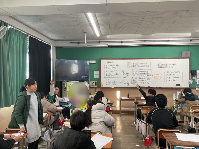 情報モラル教育で「オンラインでの発信が未来や社会に与える影響」について学習しました。