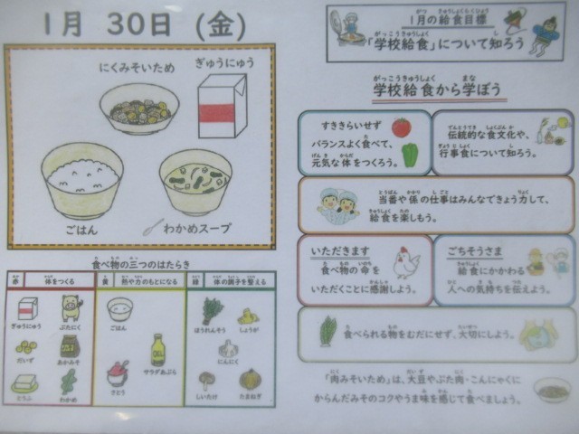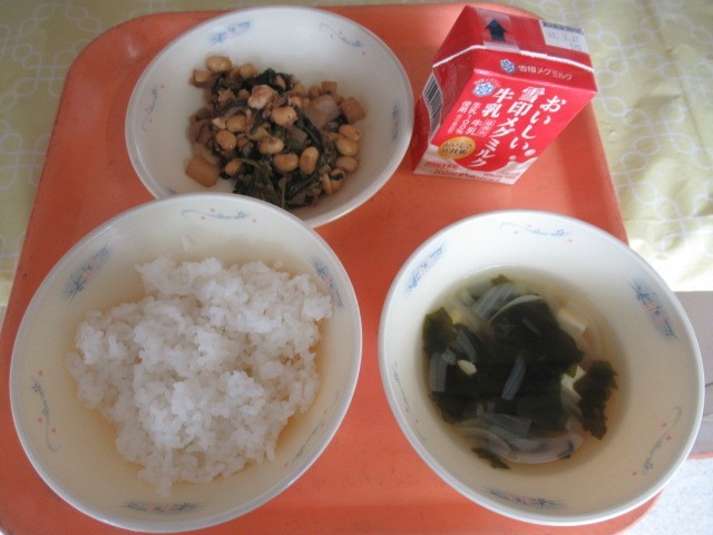 ごはん、牛乳、肉みそいため、わかめスープ