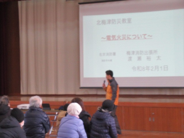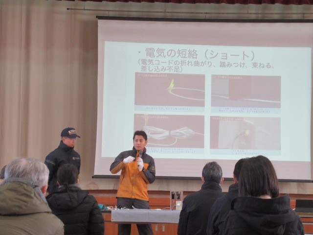 右京消防署梅津消防出張所の方から「電気火災について」と題し、トラッキング火災や感電ブレーカーについて詳しく教えていただきました。