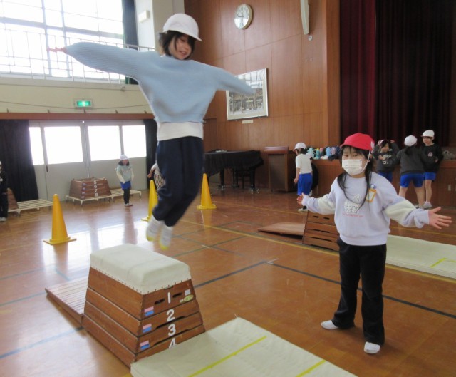 体育科の学習で、「とびばこ」を頑張っています。