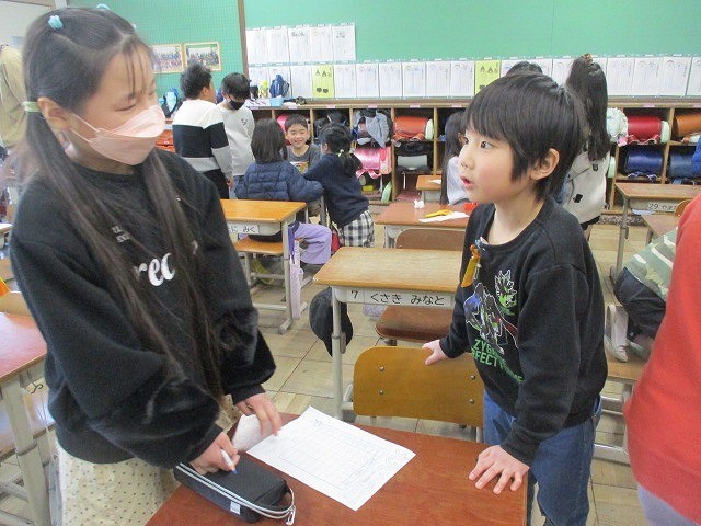 これまでも、掃除や学習などの場面で、様々な交流をしてきた2年生と4年生。どんどん仲が深まり、お互いのことを知ることができました。一緒の校舎で、よく出会うことがありますが、通りがかる時は、いつもニコニコの笑顔です。これからも、仲良く過ごしてほしいと思います。