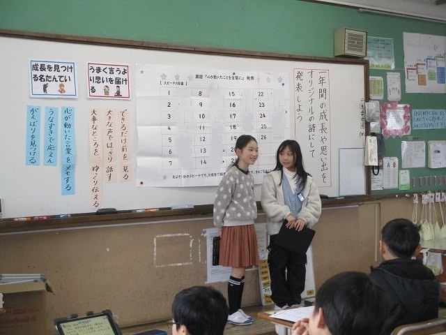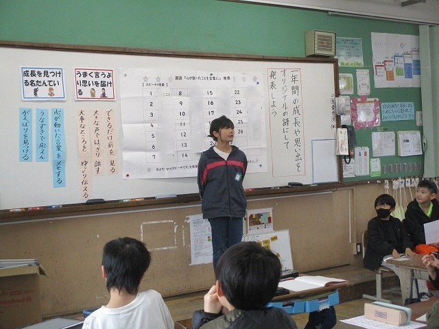 今日は参観日でした。4年生での1年間をふり返り、成長したことや思い出を、オリジナルの詩にして発表しました。