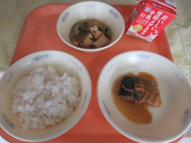 ごはん、牛乳、さばのかわり煮、厚あげの野菜あんかけ