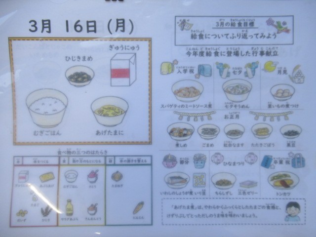 麦ごはん、牛乳、あげたま煮、ひじき豆