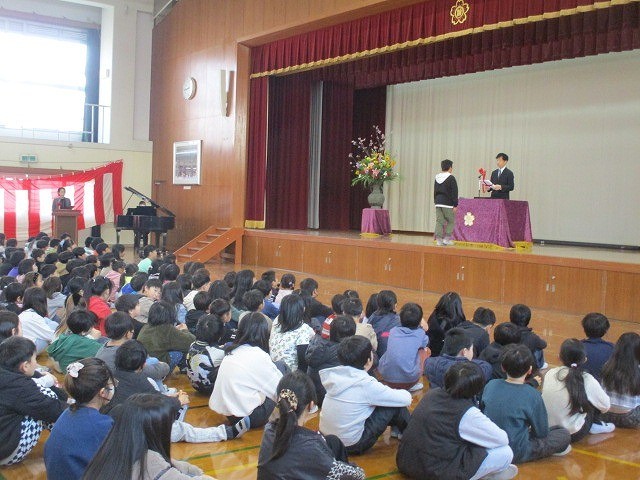 本日は令和7年度の修了式がありました。1年間の締めくくりにふさわしい、立派な態度で臨むことができました。4年生は学年目標『4for...』に向かって、これまで力を合わせて頑張ってきました。子どもたちの成長を近くで見ることができ、すてきな思い出をたくさん作れたことを担任団は嬉しく思っています。4月からは5年生として、高学年の仲間入りをします。この梅津北小学校を新6年生と引っ張っていくことを期待しています。