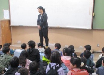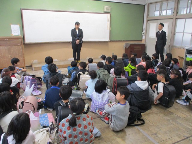 始業式の後、3年生のフリースペースでクラス発表を行いました。一人ひとり担任の先生から名前を呼ばれ、子どもたちは自分のクラスと番号を確認していました。