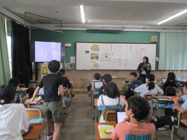 6年生は国語の学習で比喩を使った表現で食べ物クイズをしました。