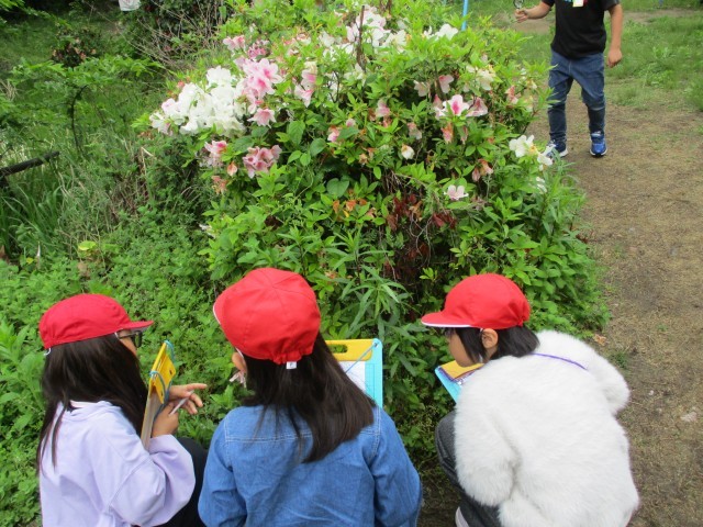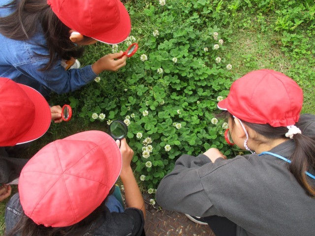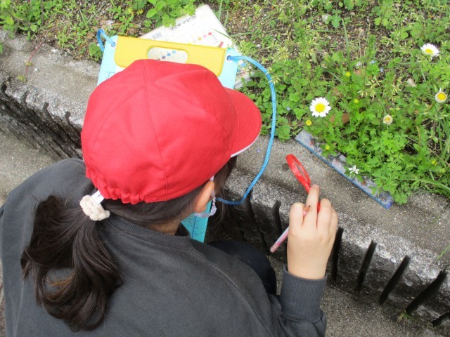 前回の理科の学習で、生き物を探しに校内散策をしました。今回は、虫眼鏡を使って生き物を詳しく観察しました。子どもたちは、大きさ・形・色に気をつけながら観察していました。