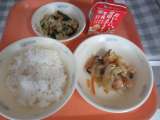 麦ごはん、牛乳、五目どうふ、ひじきと野菜のいためナムル