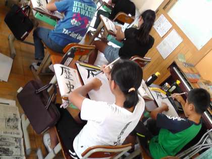 書写の学習で「歴史」という言葉を書きました。今回は,文字の組み立て方と点画のつながりに気をつけて書きます。お手本をよく見て,どこをどのように書くとよいのか考えて書くことができていました。少し意識するだけでも初めより上手に書くことができます。上手く書けると満足そうでした。
