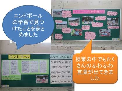 体育ではエンドボールをしました。グループで一致団結し、作戦会議を立てゲームをしました。その中でたくさんのいいところを見つけました。