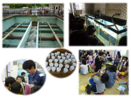 浄水場はとても広い敷地内で,たくさんの工程がありました。始めは少し濁っていた水が,だんだんきれいになる様子がはっきりとわかりました。急速ろ過池では,薬品で取り除くことが出来なかったにごりを砂の層でこし(ろ過)て,さらにきれいな水にします。