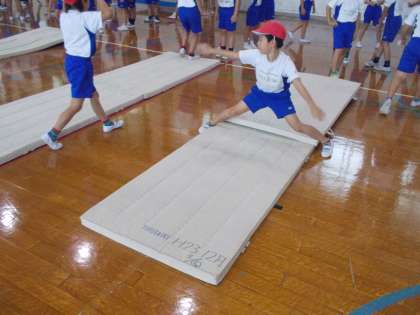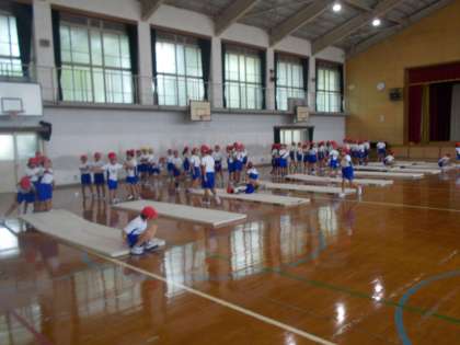 3年生の体育の授業では,「マット運動」をしています。特に今回の授業では,開脚前転,開脚後転,側転を中心に練習しています。いろいろな技をできるようになると,マット運動も楽しくなりますね。