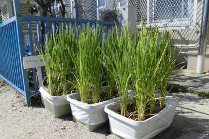 地域の方からいただいた稲の苗を育てています。