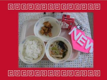 「東アジア文化都市2017京都」の開催に合わせ、それぞれの国や都市や食文化に興味を持つ機会となるように、中国・韓国の料理が9月の献立に登場します。9月15日は中国料理が給食に登場しました。ヨウリンジーとミーフンです。ヨウリンジーは鶏肉を油で揚げて甘酢ダレにからめます。にんにく・しょうが・白ネギが隠し味です。ミーフンは米粉麺を中華スープの中に入れています。学校中に中華のとても良い香りがしていました。