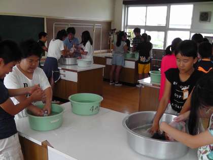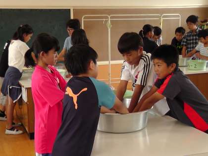 家庭科の学習で手洗いに挑戦しました。もみ洗いやつまみ洗いなど,意識して洗うことができました。手洗いをした経験のある子も多かったですが,みんな大変楽しそうにお洗濯していました。「普段は,洗濯機に入れれば洗えるけど,手洗いは大変だ・・・」という思いももっていました。