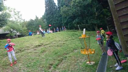 最初は思わぬ方向にとんでいたフリスビーも、どんどんなれてくると上手に狙えるようになってきました。
