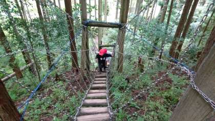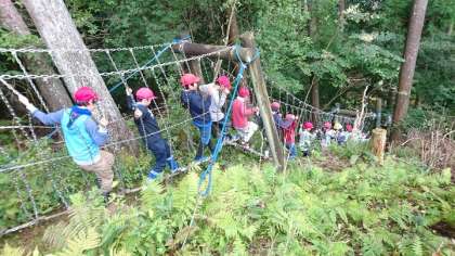 お昼ご飯の後は,子どもたちが楽しみしていた冒険の森でのアスレチックです。