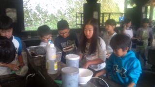 すすのついた鍋をきれいに洗うのは大変でしたがなんとかしようと一生懸命に洗っている子どもたちでした。