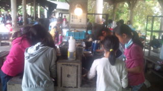 おいしい食事の後は,早速みんなで後片付けをしました。