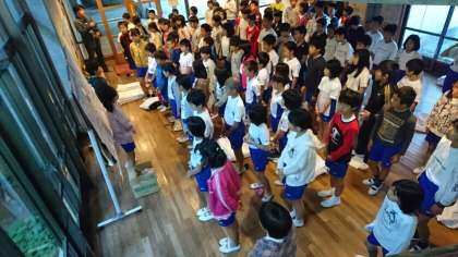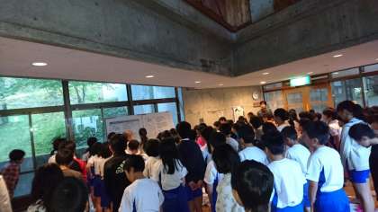 いよいよ最終日の朝を迎えました。今日は、魚つかみと魚焼きがあります。朝のつどいでは、魚つかみの方法をリーダーさんが、説明してくれました。今日も一日頑張りましょう。