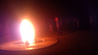 火の神が登場し、キャンプファイヤーが始まりました。