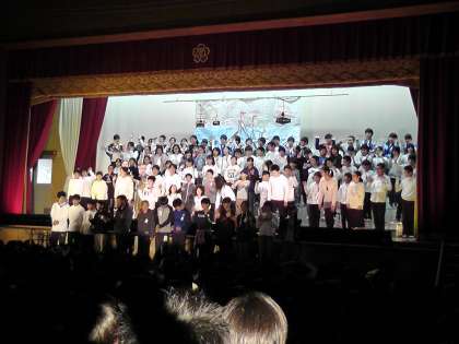 学習発表会「ぶらり時間旅行」,練習の成果をしっかり発揮し,楽しく終えることができました。今まで,より良い劇にするため,同じ場面に出る友達と一緒に考え,練習してきました。自分のセリフがない時にも演技をすることや小道具を作ることなども行いました。また,当日の照明や音響も子どもたちが担当しました。舞台の後ろに吊るしていた大きな背景も各クラスで分担して描きました。6年生の子どもたちが,たくさんたくさん頑張ってきた作品です。きっと,ひとりひとりの心の中に思い出としていつまでも残ることと思います。
