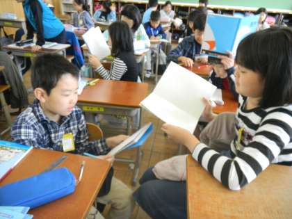 子どもたちどうしで話し合い,よりわかりやすく説明する方法を考えました。子どもたちなりの言葉で一生懸命説明しようとしていました。