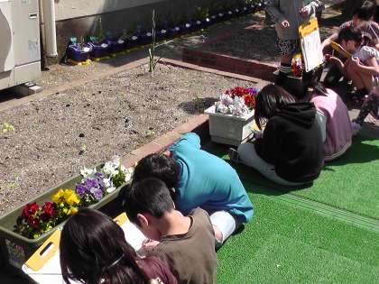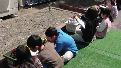 3年生の理科の学習で春の生き物観察をしています。虫めがねも使ってくわしく観察しています。虫めがねの使い方についても学習しています。虫めがねを動かすのではなく,見たいものを動かすこと,動かせない時は,観察するものと自分との距離を変えてみること,そして,何よりも太陽を見てはいけないということなど,安全な使い方を守って観察していました。