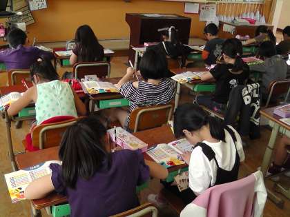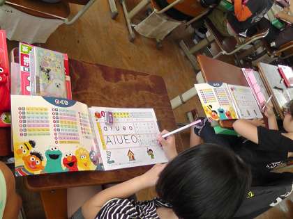 3年生では,ローマ字の学習もします。あ行から順に練習しています。3年生の子どもたち,ローマ字にも意欲いっぱいに取り組んでいます。