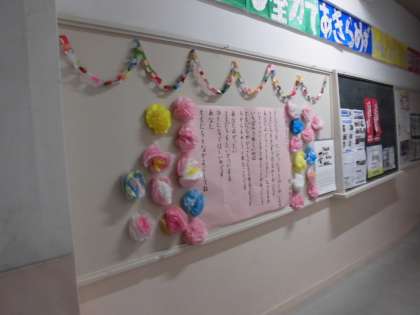 本館から体育館へと向かう通路に人権掲示板があります。